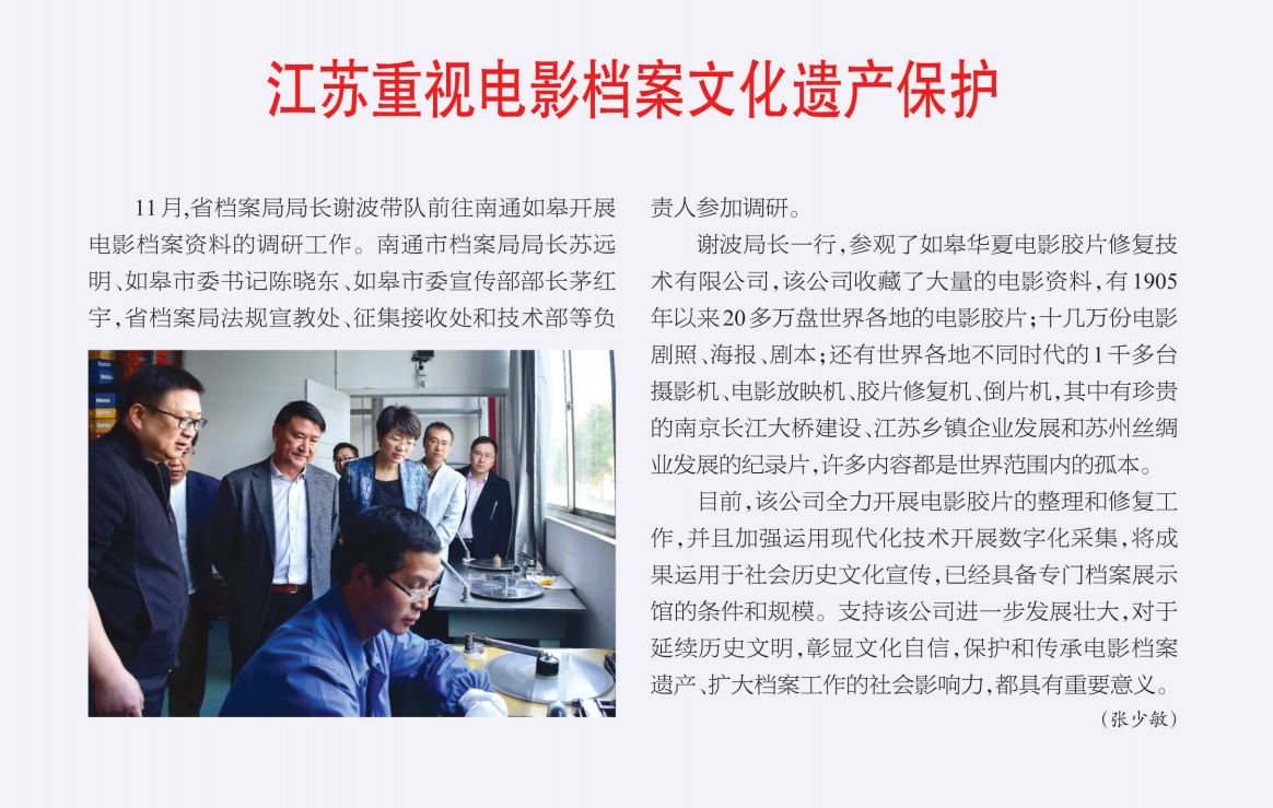 江蘇重視電影檔案文化遺產保護
