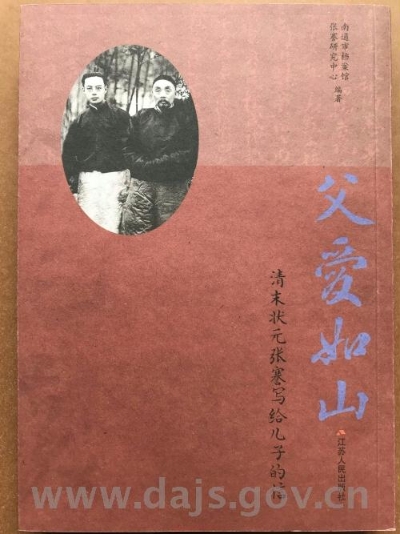2019年5月,由南通市檔案館、張謇研究中心編著的《父愛如山——清末狀元張謇寫給兒子的信》一書在江蘇人民出版社正式出版。該書內容收入南通市檔案館館藏的清末狀元、實業家、教育家、社會活動家張謇(1853—1926)寫給兒子張孝若(1898—1935)的125 封信,寫信時間大致為1909年至1916年。以影印加釋文并添加考釋的形式編排。