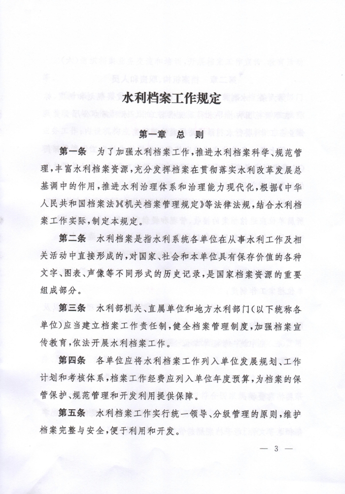 水利部 國家檔案局關(guān)于印發(fā)水利檔案工作規(guī)定的通知