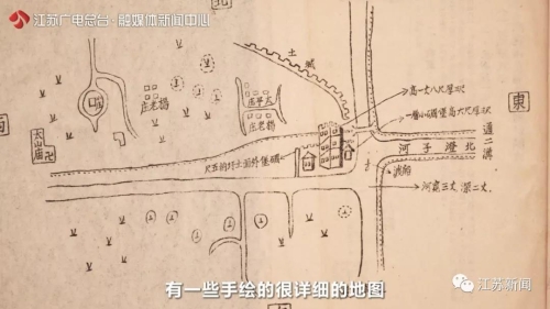 揚州市檔案館副研究館員 雍俊:就拿這本《高郵縣城的各種情況調查》來說,它雖然只有非常薄的34頁,但里面內容卻非常豐富,包括河流的流速、走向,河堤的土質、坡度、寬度,更重要的是,在這份材料里面,有一些手繪的很詳細的地圖,把敵人碉堡的位置以及射擊孔的大小都做了一個批注。