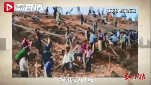從58華里外的水開一條渠一直引到茆圩境內全縣,來支援茆圩,6萬民工干了100天炸藥用了幾十噸,我們工作隊就分頭,跟老百姓一起推板車一起挖泥,一起放炸藥,手磨成泡什么的都有。