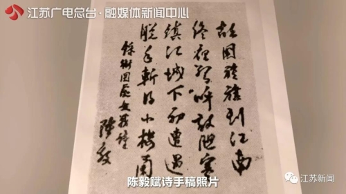 這是江蘇省檔案館館藏的陳毅賦詩手稿照片。短短28個字,勝利的喜悅躍然紙上,也記錄了1938年新四軍挺進蘇南首戰告捷的光榮歲月。