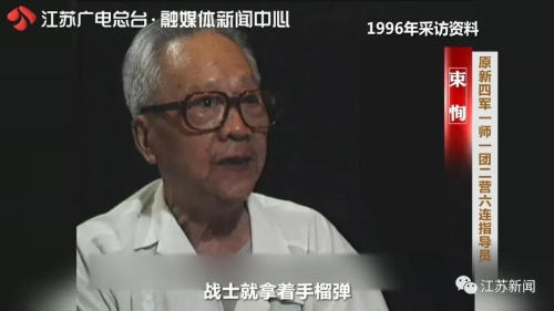 原新四軍一師一團二營六連指導員束恂:戰士就拿著手榴彈,就朝日本鬼子頭上打了,打他的頭,有的戰士扛著子彈箱子,子彈箱子就這么打上去,這樣子鬼子就被我們拼垮了。