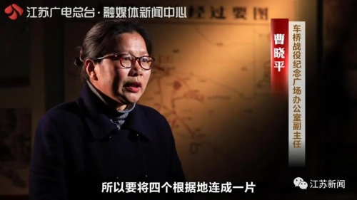 車橋鎮車橋戰役紀念廣場辦公室副主任曹曉平:千年古鎮車橋,在歷史上是東西南北的交通樞紐,所以日寇來了以后,占領車橋,將我們蘇中、蘇北、淮南、淮北,四個根據地分割開來。要將四個根據地連成一片,就必須要拿下車橋,拔掉這根釘子。