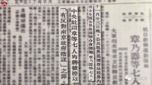 一份發行于1936年11月30日的《救國時報》,現珍藏在江蘇省檔案館,上面記載了逮捕行動的相關內容。“十一月二十三日晚,公共租界巡捕在法租界內,捕去全國各界救國聯合會領袖章乃器等七人。中央社謂章等七人,均將被控以有反對南京政府陰謀之罪。”
