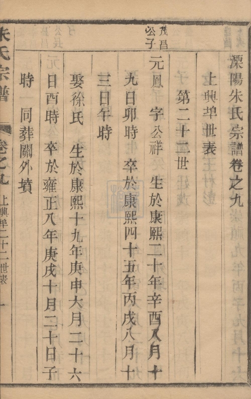 溧陽《朱氏宗譜》卷九——上興埠世表