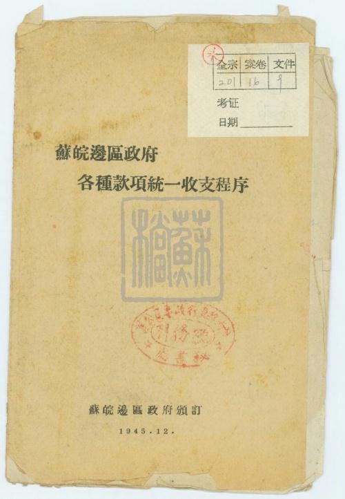 1945年12月,蘇皖邊區(qū)政府各種款項(xiàng)統(tǒng)-收支程序。