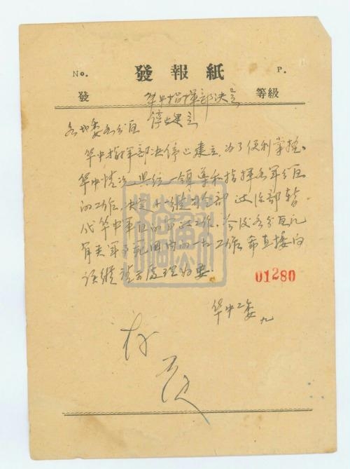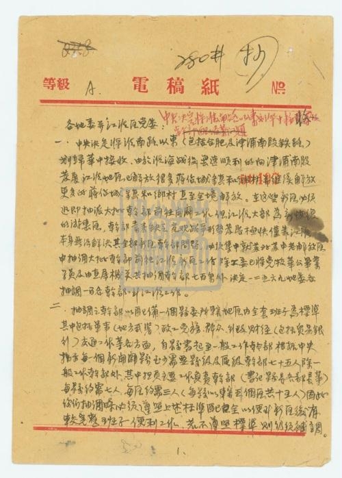 華東局致華中工委《關(guān)于整頓電訊工作的決定》