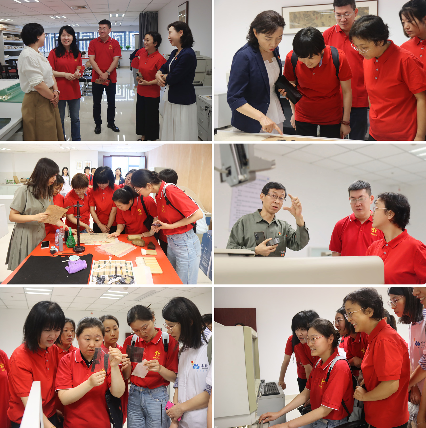 隨后,金貿南京公司一行參觀了技術保護工作室,并就如何開展檔案安全和保護工作進行了深入交流。大家深深感到檔案是歷史的真實記錄,是黨和國家的寶貴財富。檔案工作者要耐得住寂寞、忍得了孤獨,發揚工匠精神,精益求精,永葆匠心“本色”;甘于奉獻,堅守匠心“底色”;追求卓越,彰顯匠心“亮色”。大家紛紛表示,要精細整理與修復好紅色檔案,讓紅色檔案再現歷史原貌,切實把紅色檔案資源保護好,更好發揮紅色檔案在服務主題教育、“四史”教育、愛國主義教育、培育社會主義核心價值觀、實現中華民族偉大復興中的重要作用,促進紅色基因代代相傳、革命文化傳承弘揚。