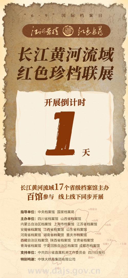“6·9”國際檔案日,四川聯合長江黃河流域省級綜合檔案館隆重推出“江河奔騰 紅色追尋”長江黃河流域紅色珍檔線上線下聯展。展覽匯集百余個檔案館、單位300余件紅色珍檔,形成紅色文化合力,發出紅色檔案強音,建設紅色文化學習陣地。