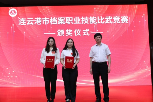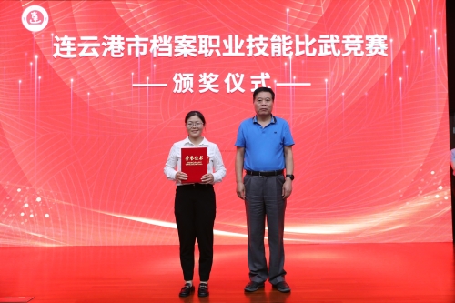 連云港市檔案館黨組書記、館長許思文為團體第一名、第二名、第三名頒獎