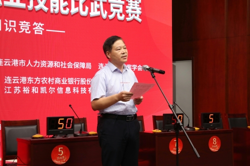 (連云港市人社局副局長、二級調研員邵曉峰為二等獎獲得者頒獎)