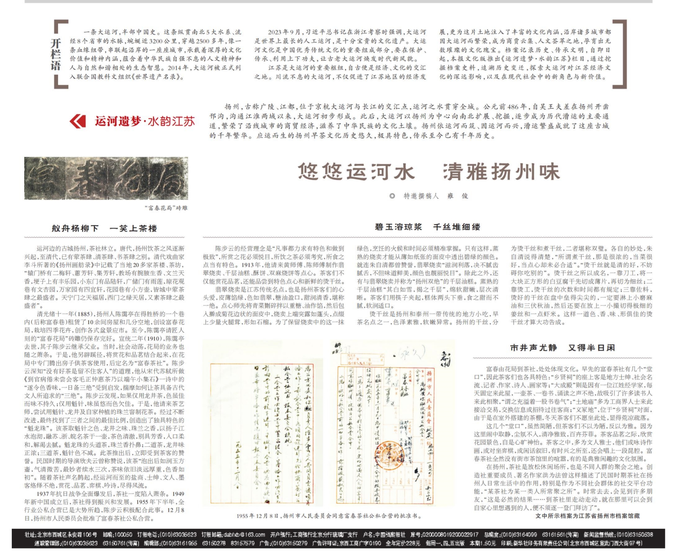 悠悠運河水 清雅揚州味 |《中國檔案報》(2024年1月19日)