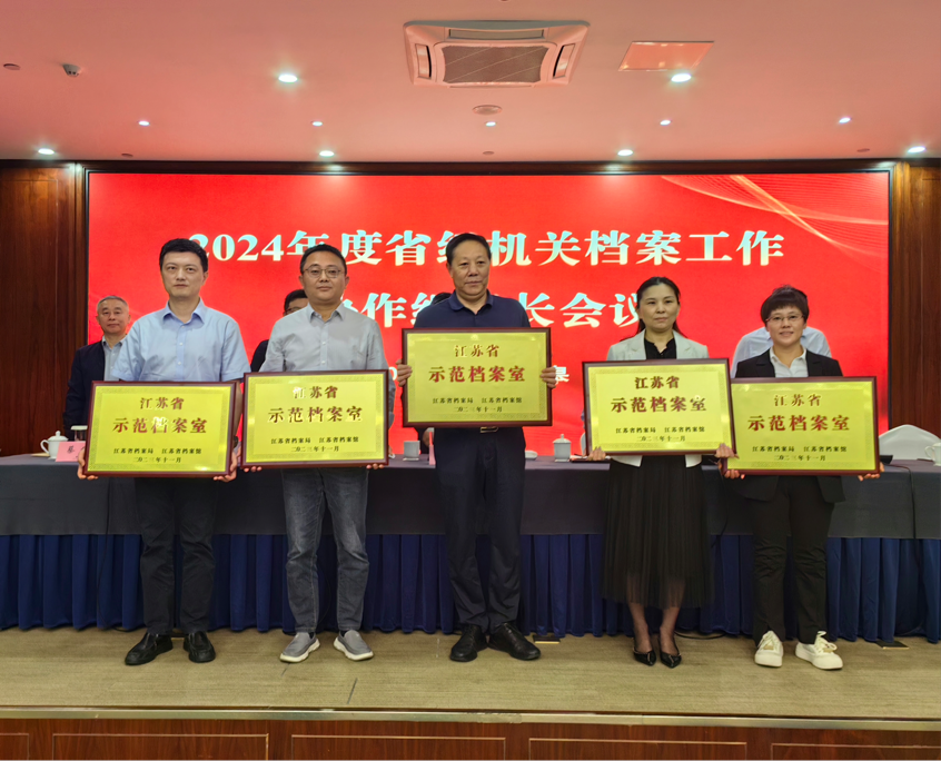 會議傳達落實全省檔案工作會議精神,回顧總結2023年省級機關檔案工作,部署2024年省級機關檔案工作任務,對獲評“江蘇省示范檔案室”的省級機關單位頒發(fā)牌匾,省工業(yè)和信息化廳等五位單位代表作了交流發(fā)言。