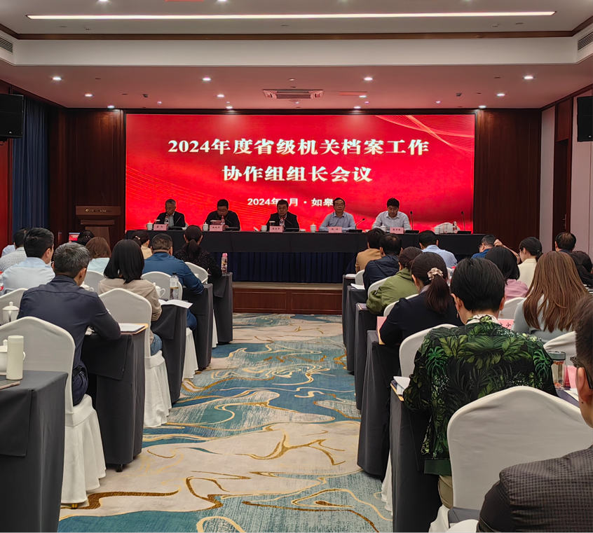 5月15—16日,2024年度省級機關檔案工作協(xié)作組組長會議在南通如皋召開。省檔案館副館長蔡宜軍主持會議,省檔案館一級巡視員趙深出席會議并講話,如皋市委副書記陳威濤到會致辭。省級機關檔案工作協(xié)作組組長、省檔案館相關業(yè)務處室代表等共80余人參加會議。