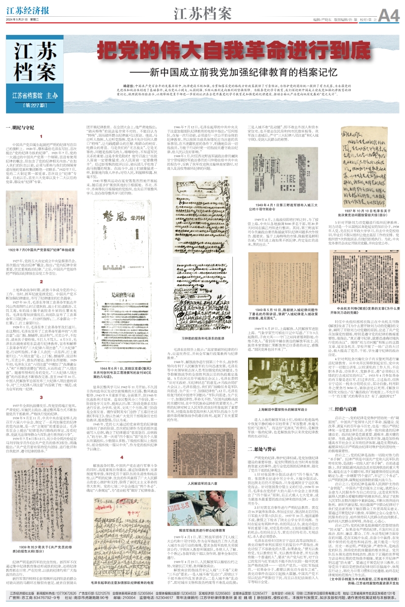 把黨的偉大自我革命進行到底——新中國成立前我黨加強紀律教育的檔案記憶 | 《江蘇檔案》特刊第227期