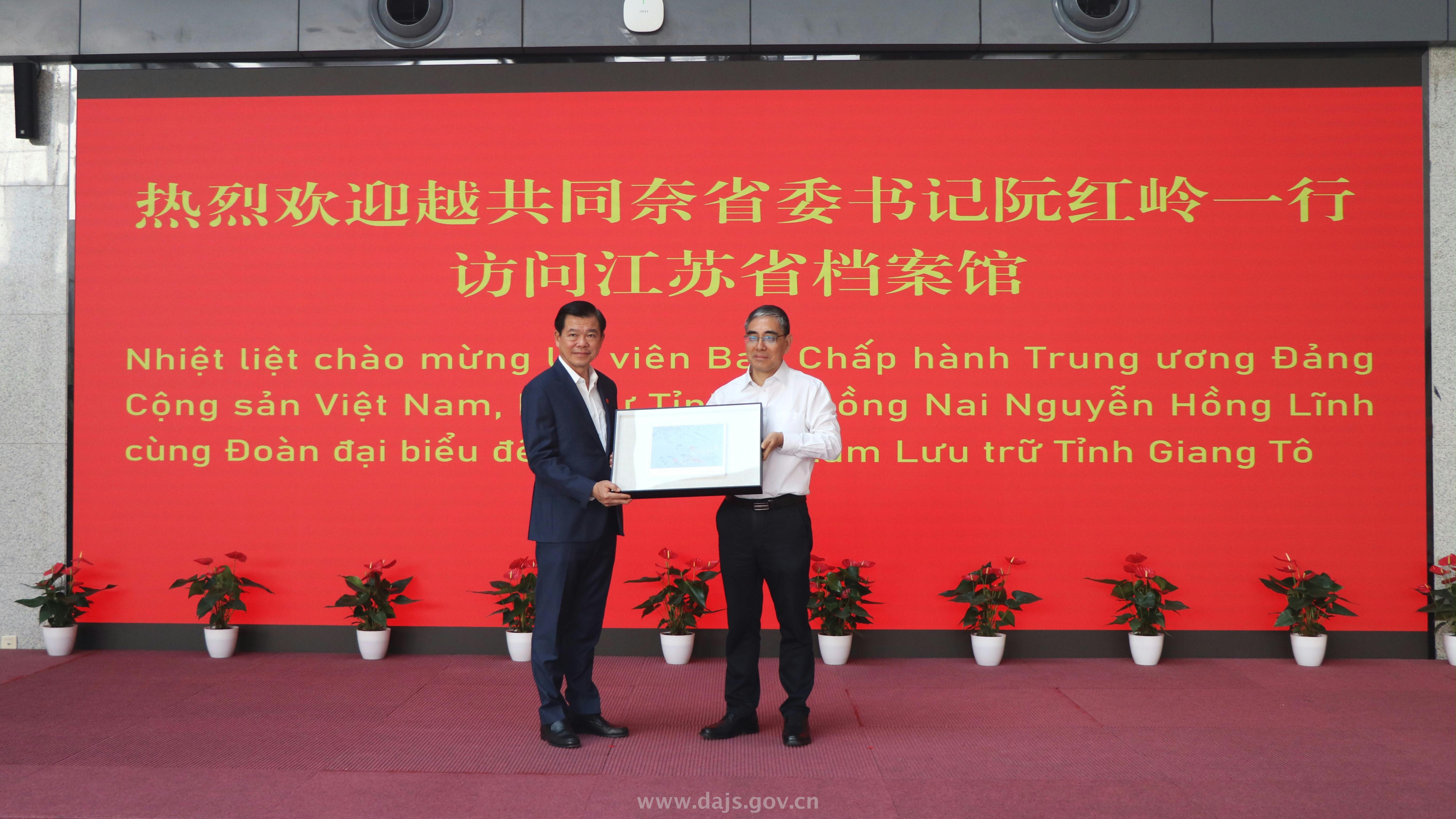 越共中央委員、同奈省委書記阮紅嶺率團訪問江蘇省檔案館
