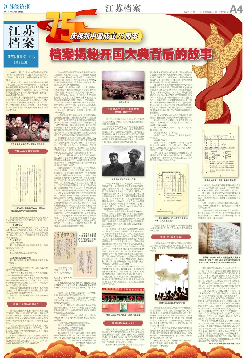 慶祝新中國成立75周年——檔案揭秘開國大典背后的故事 | 《江蘇檔案》特刊第232期