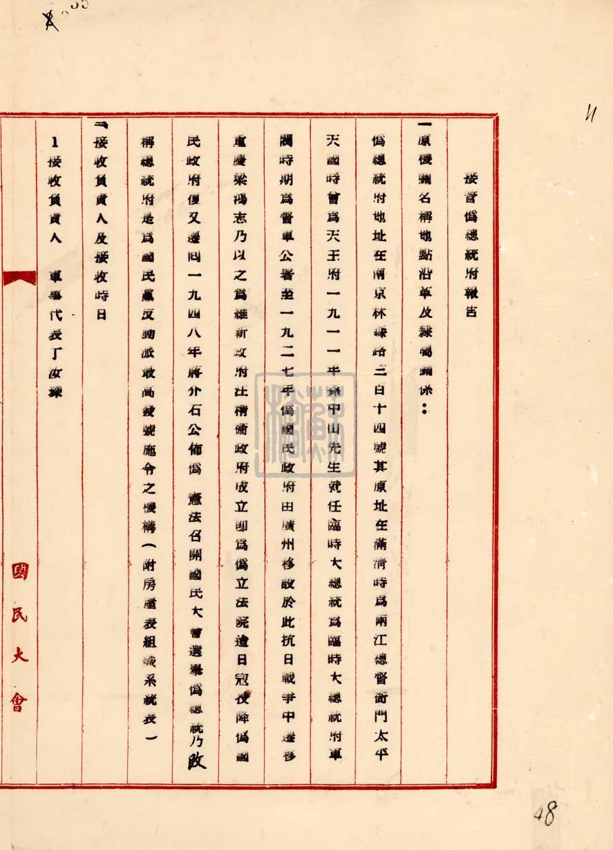 這份報告是南京市軍管會接管南京偽總統府最權威的史料。