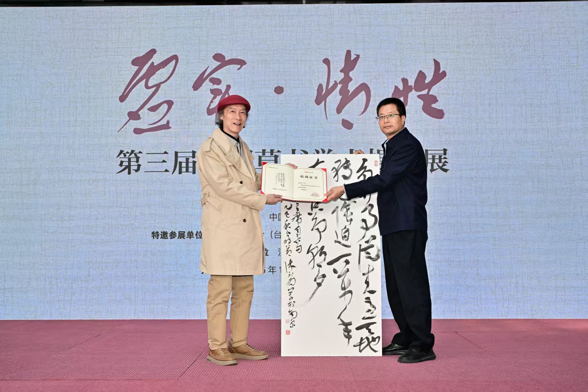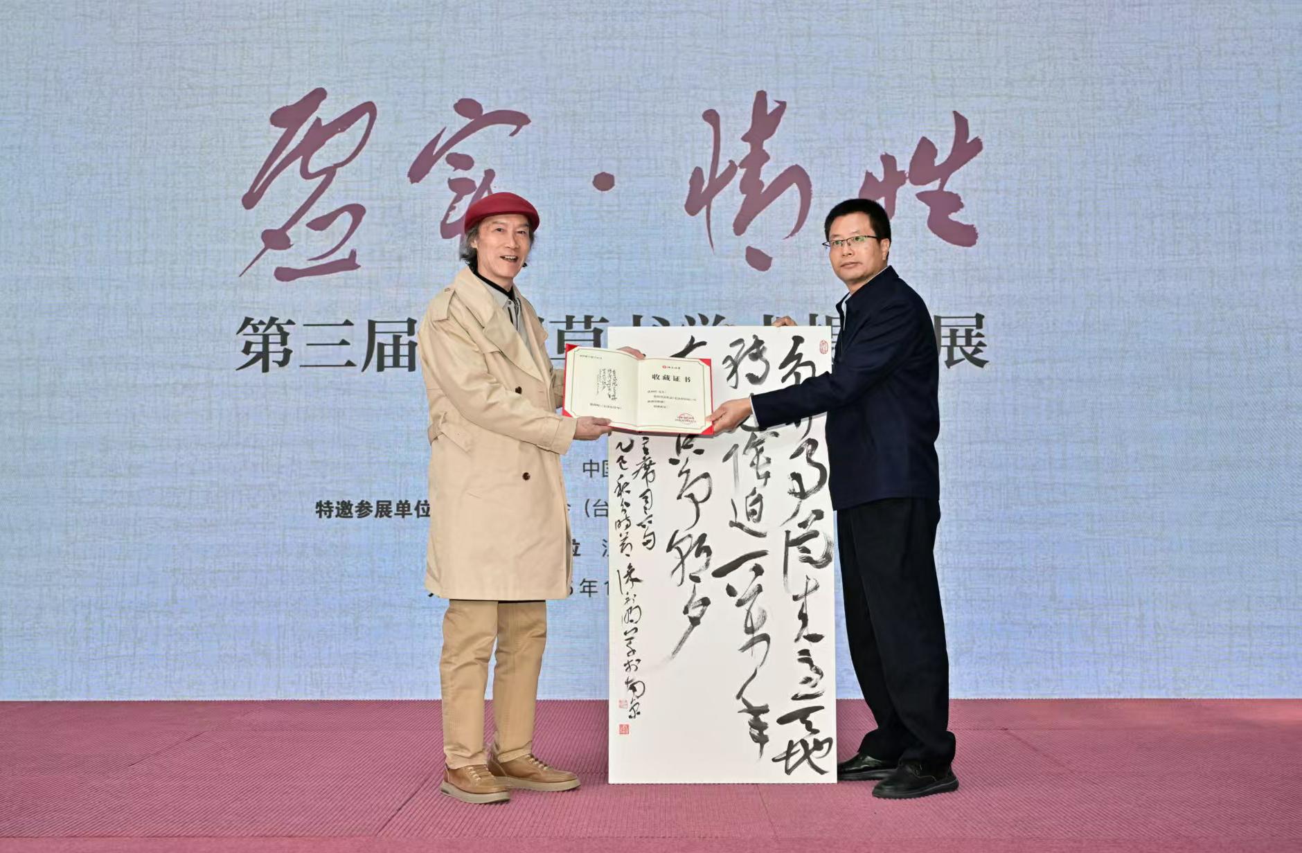 徐利明社長(zhǎng)致辭中對(duì)本次活動(dòng)的主題——“虛實(shí)·情性”進(jìn)行了詮釋。他表示本次展覽旨在加強(qiáng)書(shū)法家對(duì)于草書(shū)發(fā)展源流及書(shū)體演變有清晰認(rèn)識(shí)和把握,對(duì)每位參展書(shū)家而言,是一種全新挑戰(zhàn),也是一種??修煉。他希望,通過(guò)此次活動(dòng),讓中國(guó)標(biāo)準(zhǔn)草書(shū)學(xué)社成為兩岸交流的友好使者,讓書(shū)法成為促進(jìn)交流、連接心靈、凝聚共識(shí)的橋梁,共同開(kāi)創(chuàng)兩岸的美好未來(lái)。