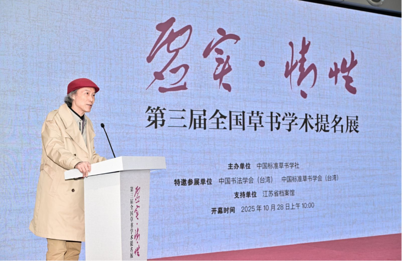 10月28日上午,由中國(guó)標(biāo)準(zhǔn)草書(shū)學(xué)社主辦的“虛實(shí)·情性”——第三屆全國(guó)草書(shū)學(xué)術(shù)提名展在江蘇省檔案館開(kāi)幕。