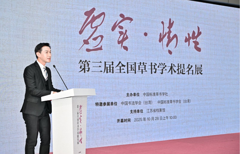 來(lái)自中國(guó)臺(tái)灣的簡(jiǎn)名偉(南京云錦博物館館長(zhǎng))表示,書(shū)法藝術(shù)乃中華民族之瑰寶,此次全國(guó)草書(shū)學(xué)術(shù)提名展的舉辦,為兩岸書(shū)法家搭建了珍貴的交流平臺(tái),讓大家能在筆墨的流轉(zhuǎn)間感受中華文化的博大精深,增進(jìn)感情。未來(lái)期待與中國(guó)標(biāo)準(zhǔn)草書(shū)學(xué)社及兩岸各界加強(qiáng)合作,共同推動(dòng)書(shū)法藝術(shù)的傳承與創(chuàng)新,讓標(biāo)準(zhǔn)草書(shū)作為獨(dú)特的文化載體,為增進(jìn)兩岸同胞的文化認(rèn)同和情感聯(lián)結(jié)注入更多正能量。