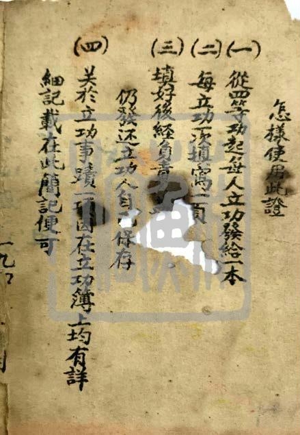 華東野戰軍第九縱隊政治部印制的《功勞證》(1948—1950年)