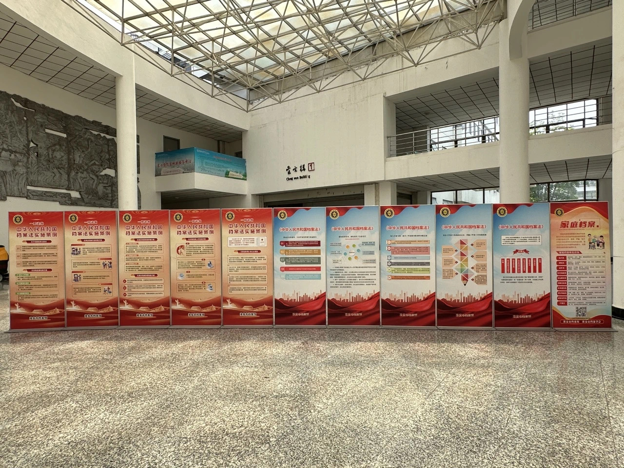 活動期間,淮安市檔案局、市檔案館充分利用電子大屏滾動播放宣傳圖片、更新宣傳櫥窗圖文內容、懸掛主題宣傳橫幅等,營造出濃厚的“國際檔案日”氛圍,讓檔案文化融入城市的大街小巷。
