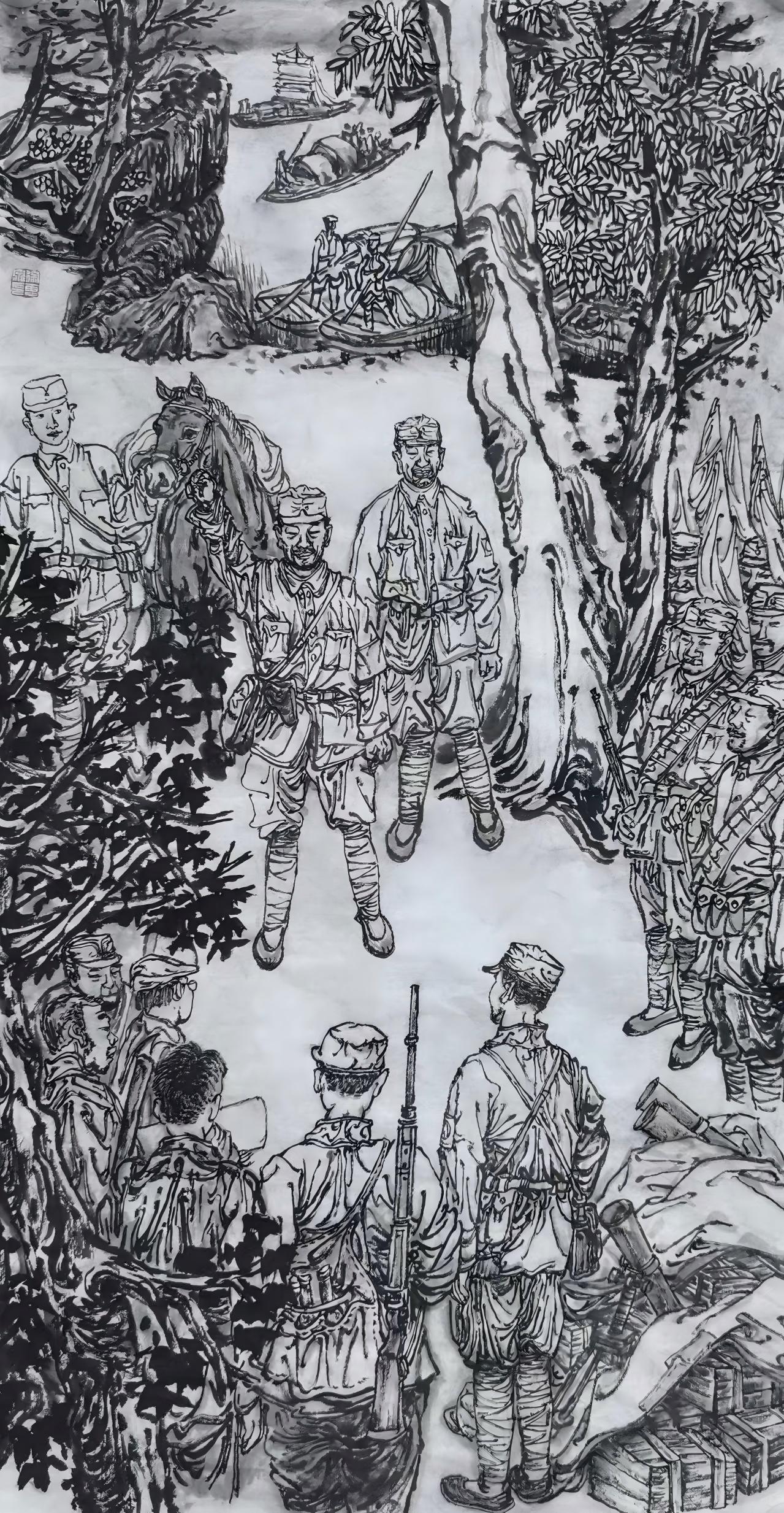 省文聯副主席、省美術館原館長徐惠泉《戰斗在大江南北的新四軍》