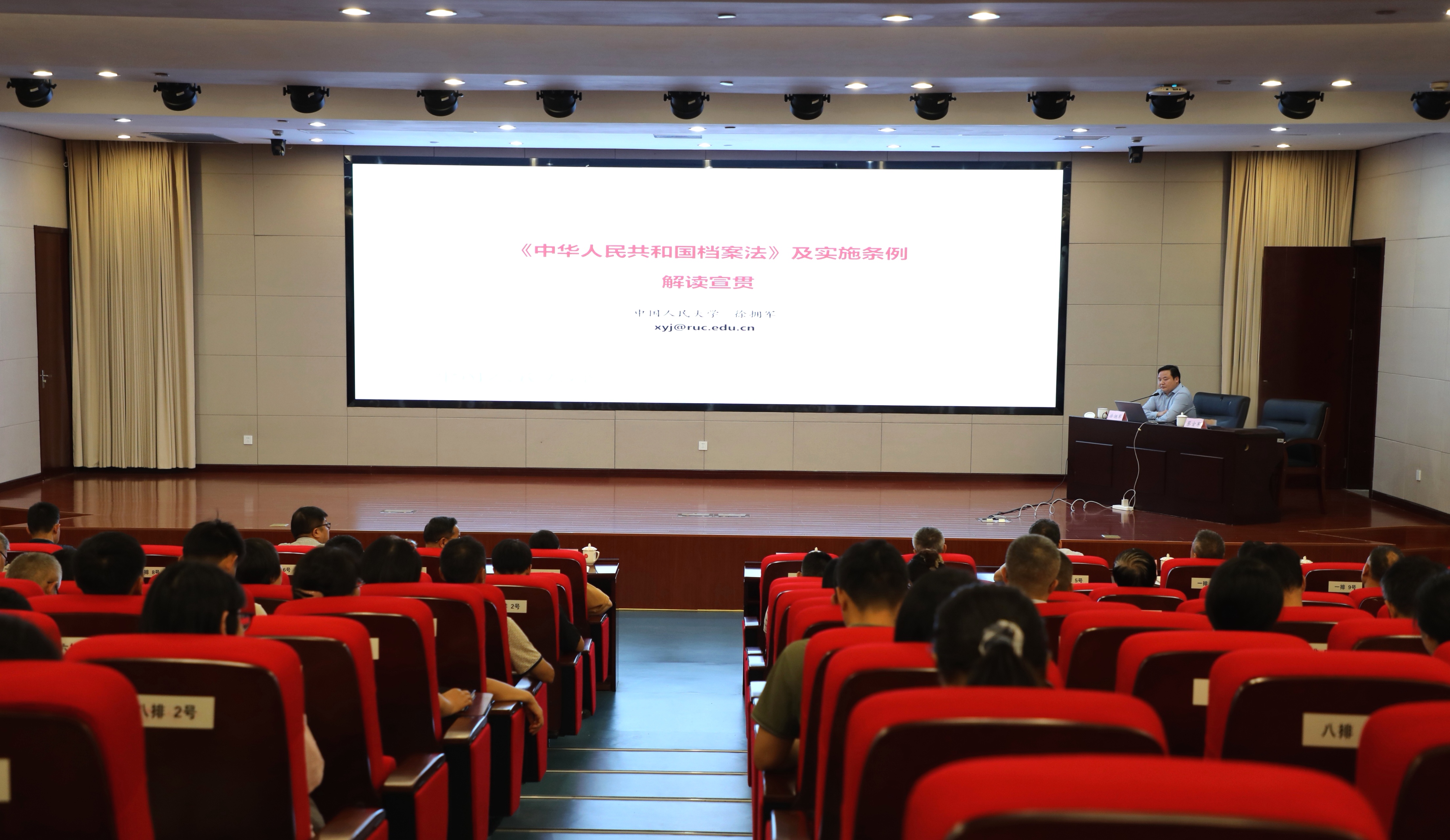 中國人民大學信息資源管理學院徐擁軍教授以《<中華人民共和國檔案法>及實施條例解讀貫徹》為題,從依法治檔、貫徹《檔案法》及實施條例的工作要點兩個方面,全面解讀了《中華人民共和國檔案法》及實施條例,多維度闡述了加強檔案法治建設的針對性意見和觀點。
